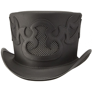 The Pinster is a new addition to our Voodoo Hatter line. It fits right in with its fierce sense ofplayfulness inherent in the hand cut combination of deep black leather and mesh. Don’t beafraid to kick back and cool your heels in this vented tallboy with a 5 ½ inch crown.